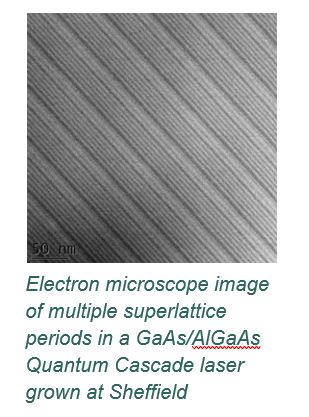 The National Epitaxy Facility has developed expertise and capability in QCLs that is available to researchers and industrial customers in the UK. The National Epitaxy Facility continues to work with academic partners developing the technology further for both fundamental studies and applications. New directions include improved performance at short wavelengths, development of THz lasers with similar structures, development of applications, fundamental physics including non-linear optics.
